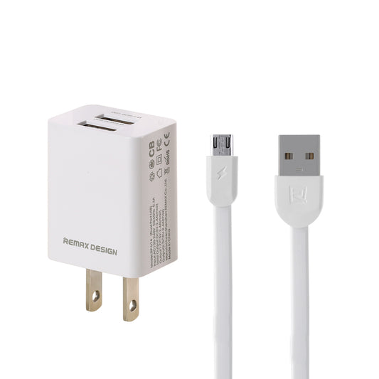 Remax Charger with Dual USB Ports and Data Cable RP-U14 PRO for Micro USB 2.4A - White