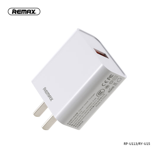 Remax Suji Series 3.0A Single USB Charger Adaptor RP-U113 - White