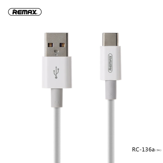 Remax Super-Fast Charging Data Cable (5A) for Type-C RC-136a quick charge - White